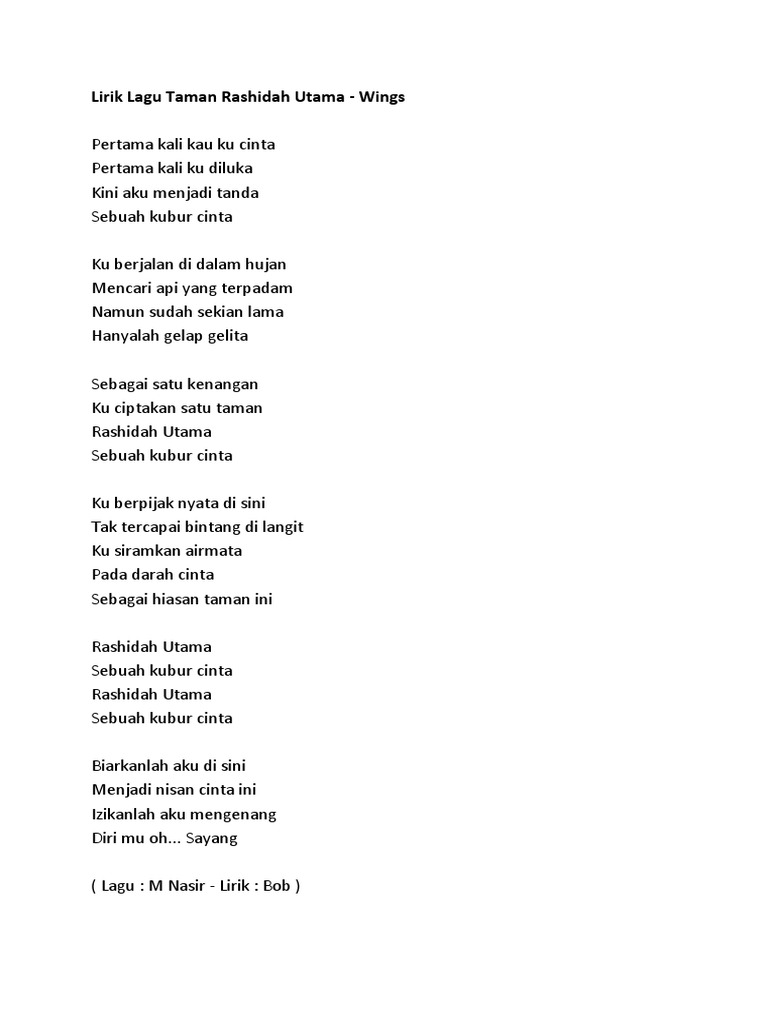 Lirik Lagu Wings Taman Rashidah Utama. Namun sudah sekian lama.